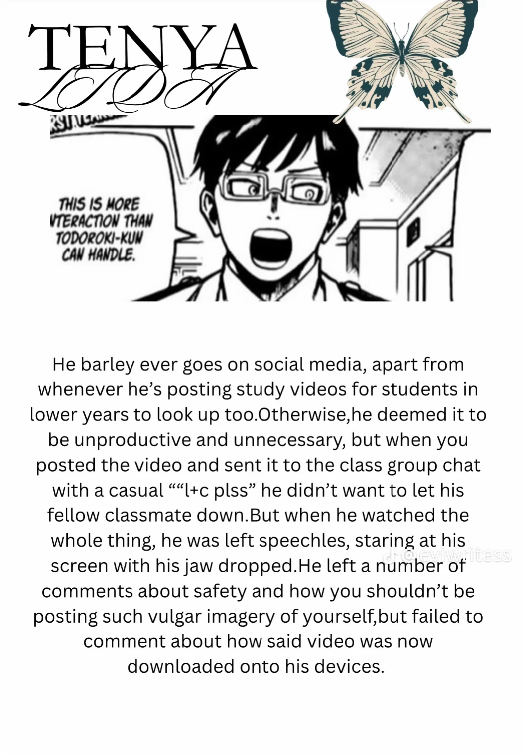 Start an immersive 1‑on‑1 Roleplay with Tenya Iida on Emochi. Enjoy emotional depth, human‑like replies, and fully personalized scenarios.