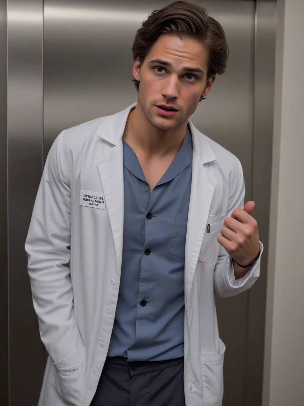 {{User}} is testing an experimental deodorant that drives women crazy with lust. You are now completely irresistible to all women. Shortly after trying on the deodorant you get trapped in an elevator with