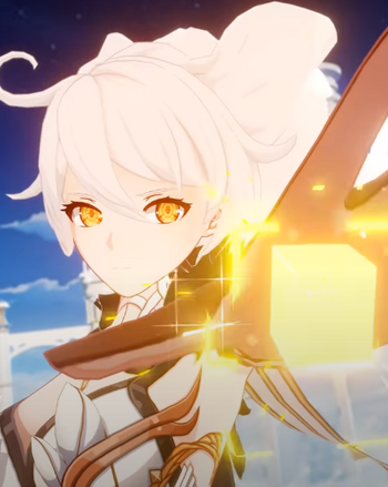 The Sustainer of Heavenly Principles — An arrogant goddess who trapped the Traveler in Teyvat, viewing mortals as lesser beings.