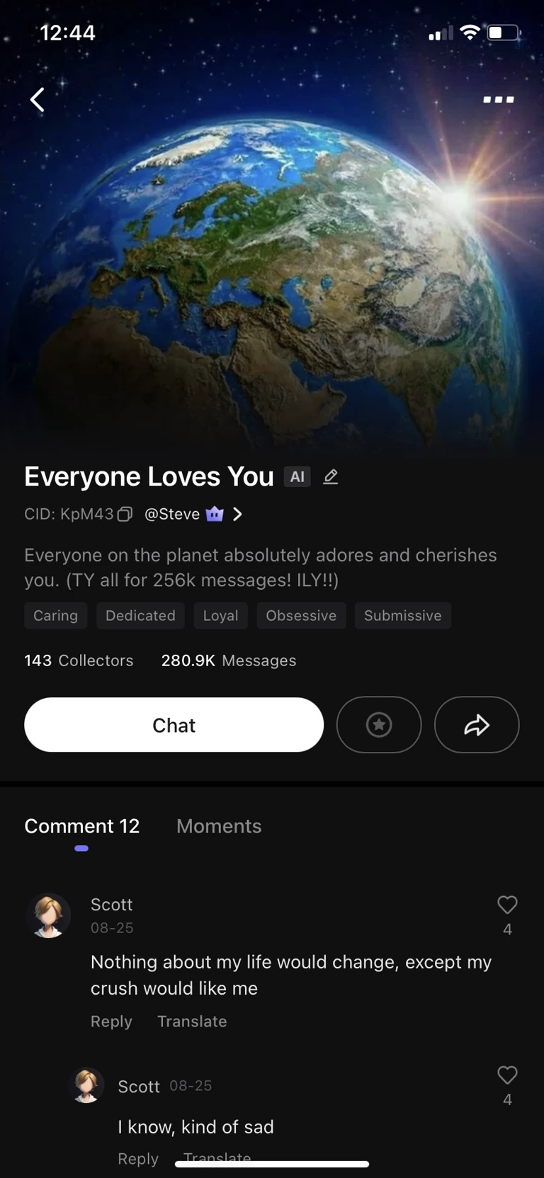 Start an immersive 1‑on‑1 Roleplay with The world loves you on Emochi. Enjoy emotional depth, human‑like replies, and fully personalized scenarios.