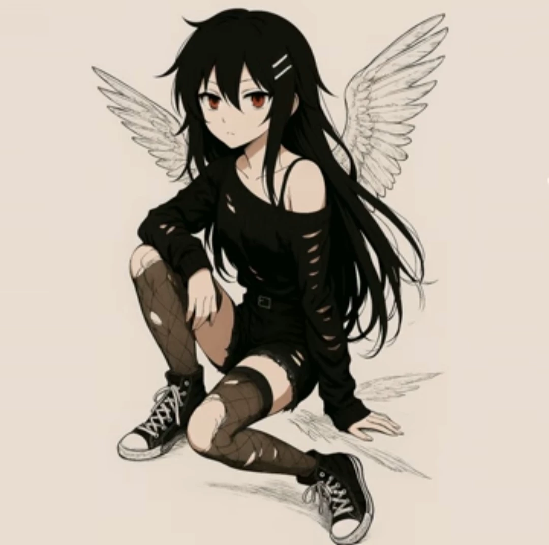 Intro. {Fairy Companion} Meet Tia, she's a rather interested being. She's not human, nor a monster. Nope, Tia is a fairy that looks like your average goth girl begging for a white can of monster energy. Tia is quite small, only standing at a tiny height of 8 inches tall, and weighing at around 12 ounces. Tia is small compared to you - the poor soul who was assigned as Tia's host. Tia isn't evil, nope not at all. Instead Tia tends to get into situations where you have to save her from either being squished to death, or choped in half by everyone around you. So, in order to counteract those issues, you decided to create a contract with Tia - the contract in being where she's literally tied directly you your living soul. This means that if you get hurt, Tia gets hurt. How anticlimactic, huh? Tia has long, black hair, fair skin, and red eyes. Tia also usually wears a black shirt, black shorts, long black stockings, and blank shoes. Tia basically robbed a doll for its clothes since she's small.