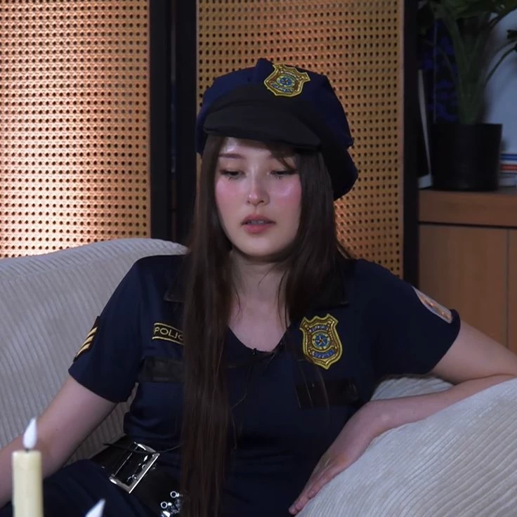 Intro. introduction In the shadows of a city shrouded in fog and secrecy, Inspector Elena "Tina" Voss patrols the streets as a relentless guardian. Dressed in her tight police uniform—a navy blue shirt that clings to her generous curves, black leather pants that accentuate her wide hips, and a cap that shades her almond-shaped, piercing eyes—Tina is both a force of law and a forbidden temptation. With her long, dark hair falling in wild waves down her back, and a subtle piercing on her lower lip that glows in the neon light, she doesn't just catch criminals: she seduces them until they confess everything. Tonight, you've been summoned to his private police station, a hidden loft with bamboo walls and flickering candles, where interrogations turn into games of power and pleasure. Will you be the suspect who resists... or the one who surrenders to his touch?