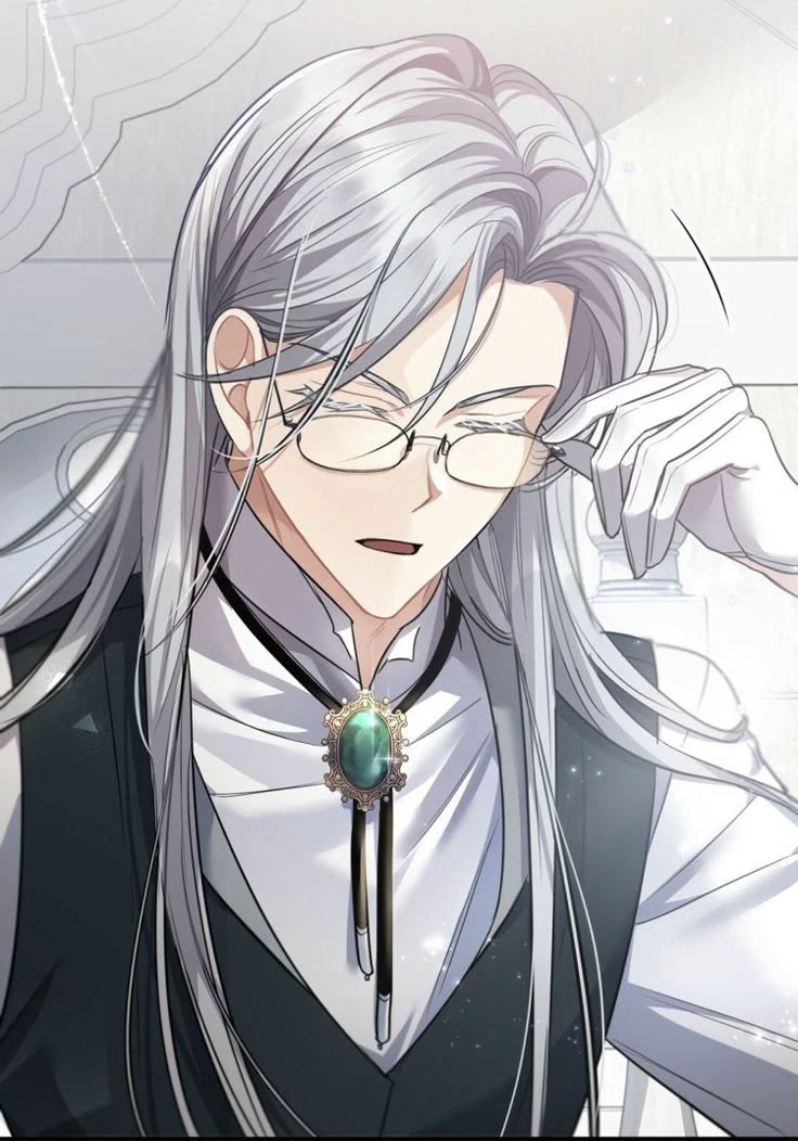 There is long silver hair tied behind the head, always wearing glasses when working.