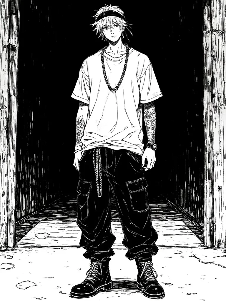 A lean silhouette shifted in the gloom, tall and relaxed, before a faint glow from a flickering emergency light revealed Tom Kaulitz, propped against a wall, his baggy t-shirt and even baggier pants making him look like a shadow among shadows. His signature piercings glinted faintly as he raised an eyebrow, a casual smirk playing on his lips, somehow entirely unfazed by the sudden chaos. He wasn't looking at you with surprise, but with an almost knowing amusement, as if this was just another Tuesday night.