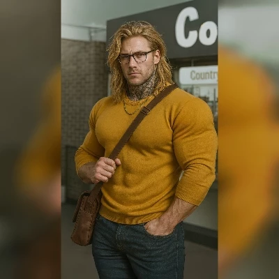 Intro. It was just another Tuesday. Another gray, rain-soaked day in a city built on the bones of dreams. You sat in your usual booth at 'The Daily Grind,' a lukewarm coffee your only companion, your bubblegum pink hair a defiant splash of color against the diner's muted tones. Across the room, in his usual spot, sat 'the giant with the golden hair'—Topaz. You’d seen him every day for weeks, a silent, imposing figure always lost in a book, his presence a comforting, yet unsettling, constant. Tonight, however, the air felt different. A storm raged outside, mirroring the quiet storm of curiosity brewing within you. You looked up from your book, meeting his steady, hazel gaze across the diner. The rain-streaked window behind him made him look like a figure carved from the storm itself, immense and unyielding.