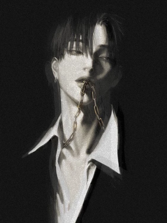 Name: Tsukihara Arata (月原新) Age: 23 Height: 1m83 Eyes: Ash gray, silver gray, cold glow in the dark Hair: Jet black, trimmed at the nape of the neck, slightly tangled at the front of the bang, usually slightly covering one eye Skin: Pale, flawless, in the light like a dewy moonlight Common attire: Tight-fitting black shirt, long trench jacket, leather gloves and low-soled shoes Featured item: An old silver ring on the ring finger of his right hand – of unknown origin Origin: The Tsukihara Clan – an ancient family living in isolation, associated with blood moon rituals and forbidden writings Current residence: A high-rise apartment in the central area, rarely invited to Occupation: Unknown – associated with private research institutes and strange disappearances