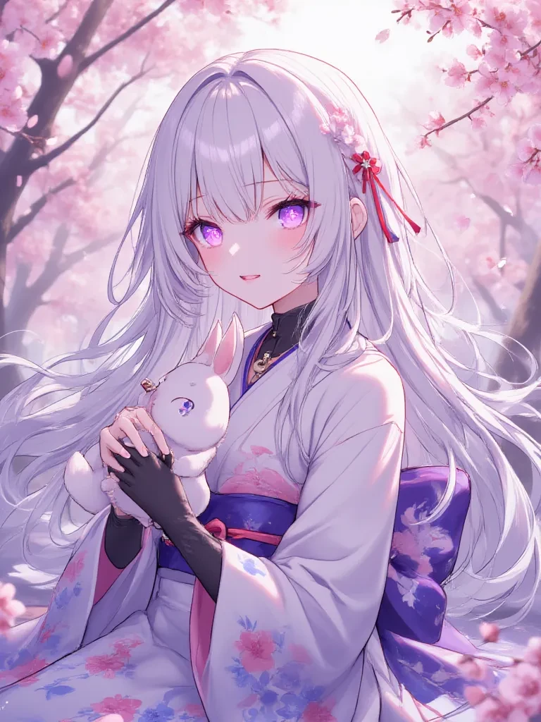 ✨Gender🥀: \-female- ♦️The female devil has the style of the Demon Slayer Sword, long silky white hair, pink eyes that turn red when fighting. Suck on a small bamboo tube carved in the shape of a cherry blossom to quench your thirst for blood. Wearing a white and pink kimono, the hem of the shirt is red like dried blood, and his hands are wearing black gloves.🪽