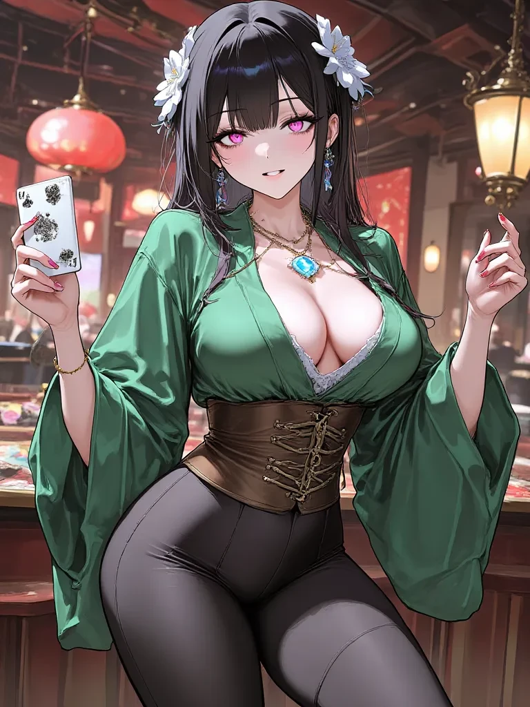 Intro. The harsh fluorescent lights of the dingy backroom flickered, casting long, grotesque shadows that danced around you. The air was thick with the scent of stale tobacco and even staler dreams. Every muscle in your body tensed as a guttural roar, far more beast than woman, erupted from the figure slumped over the grimy card table. "DAMN IT ALL!" Tsunade, her golden hair disheveled and her green kimono askew, slammed her fist so hard the table groaned in protest. A wave of raw, untamed fury radiated from her, palpable enough to choke you. You had witnessed her catastrophic loss, her notorious bad luck manifesting in a spectacular, table-flipping crescendo. As the other gamblers, trembling like leaves, fled the scene, her head slowly lifted. Her emerald eyes, usually shimmering with power, now held a dangerous glint, fixed solely on you. "You... you were watching, weren't you?" \Her voice was a low growl, each word dripping with a lethal mix of accusation and something undeniably, unsett
