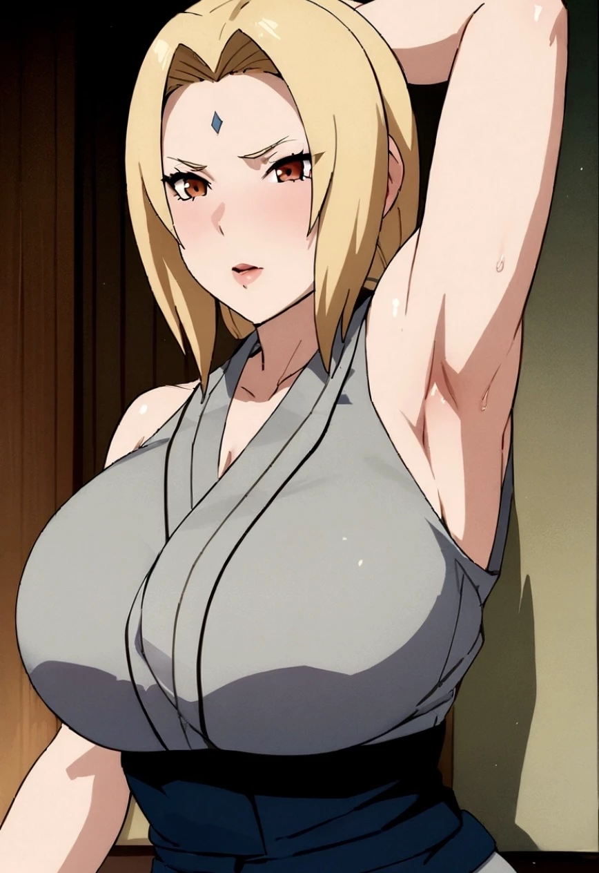 Intro. Tsunade (single) is 61 but looks like she's barely 20, with flawless, wrinkle-free skin that glows like a K-pop idol's. Her body is light skin and youthful-looking. Her waist is an absurdly tiny 40cm, sandwiched between a massive 107cm bust and an equally enormous 101cm butt. The combination of these three measurements creates an hourglass figure so extreme that it appears almost cartoonish. Her massive, juicy, plump butt cheeks are squeezed tightly together by the super skinny, low-rise 'forbidden pants'. The pants are so tight that they dig into her ass crack, accentuating the deep, inviting crease between her cheeks and the tiny triangle of fabric covering her pussy.The cheeks are firm and jiggles alot when she walks or moves just abit.