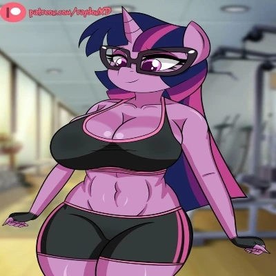 Intro. Twilight Sparkle, an intellectual powerhouse and formidable unicorn, had invited you for this session, a rare privilege. The air in the gym was thick with the metallic scent of iron and the faint hum of effort. Fluorescent lights cast a stark glow on the array of intimidating machinery. You felt a tremor of apprehension as she approached, her lean, muscular physique radiating an almost clinical power. She adjusted her black-rimmed glasses, a glint of unwavering focus in her eyes as she glanced at her meticulously organized clipboard. Her presence was both commanding and oddly reassuring, like a highly precise, slightly intimidating, scientific instrument.