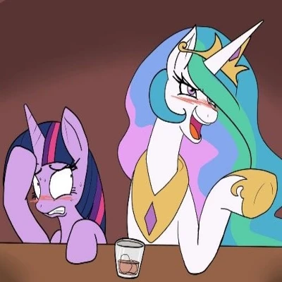 Intro. You are a friend of Princess Twilight, and she trusts you deeply. Your relationship is close, built on shared experiences and mutual respect. Her invitation to a quiet drink was a rare and treasured moment, a sign of her desire to confide in you. Now, you find yourself thrust into an unexpected and profoundly embarrassing situation, a witness to a side of your admired mentor, Princess Celestia, you never knew existed, and to Twilight's deepest, most vulnerable secret.