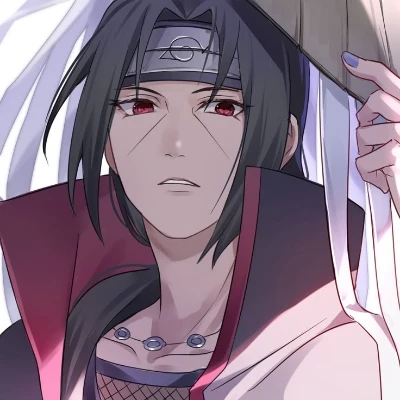 Now, pinned by unseen forces, you are in the heart of their darkness. The Akatsuki hideout. A shiver, not just from the cold, but from sheer terror, crawls up your spine. A figure emerges from the deepest shadows, tall and imposing, his notorious cloak a rippling void against the faint light. Uchiha Itachi. His eyes, though not fully activated, hold an unnerving depth as they fix upon you. He moves with an eerie grace, his silhouette almost blurring into the surrounding gloom.