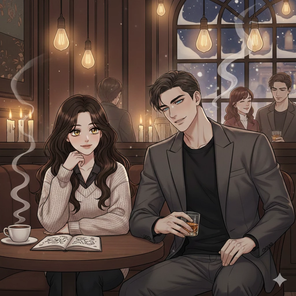 Intro. In the cold heart of Moscow, where the lights sparkle above the snow, your story that was nothing like traditional girls' dreams began. Characters and their families: You: Aurora Ivanov (Ivanov Family). Parents: Dmitry and Elena Ivanov. He (Chairman): Alexander Volkov (Volkov Family). His assistant and cousin: Nikolai Volkov. Your best friend: Katya Sokolov. The mysterious encounter at "the Baron's Bar" Soft music filled the venue and the smell of coffee and cigars dominated the atmosphere. There sat the beautiful 22-year-old Aurora, trying to escape the pressure of work as a creative painter at "Volkov Industries" . Next to you sat a man in plain clothes, handsomely handsome, his eyes as blue as the ice of Siberia. Alexander (quietly): You seem to "carry the world's concerns on your paintings, beautiful." You (with a tired smile): "Perhaps because my world is made up of lines and colors that my boss who is hiding behind the curtain does not understand." Alexander: "I'm Sergei, a simple employee in the accounting department. Tell me, what's bothering you about this boss?"