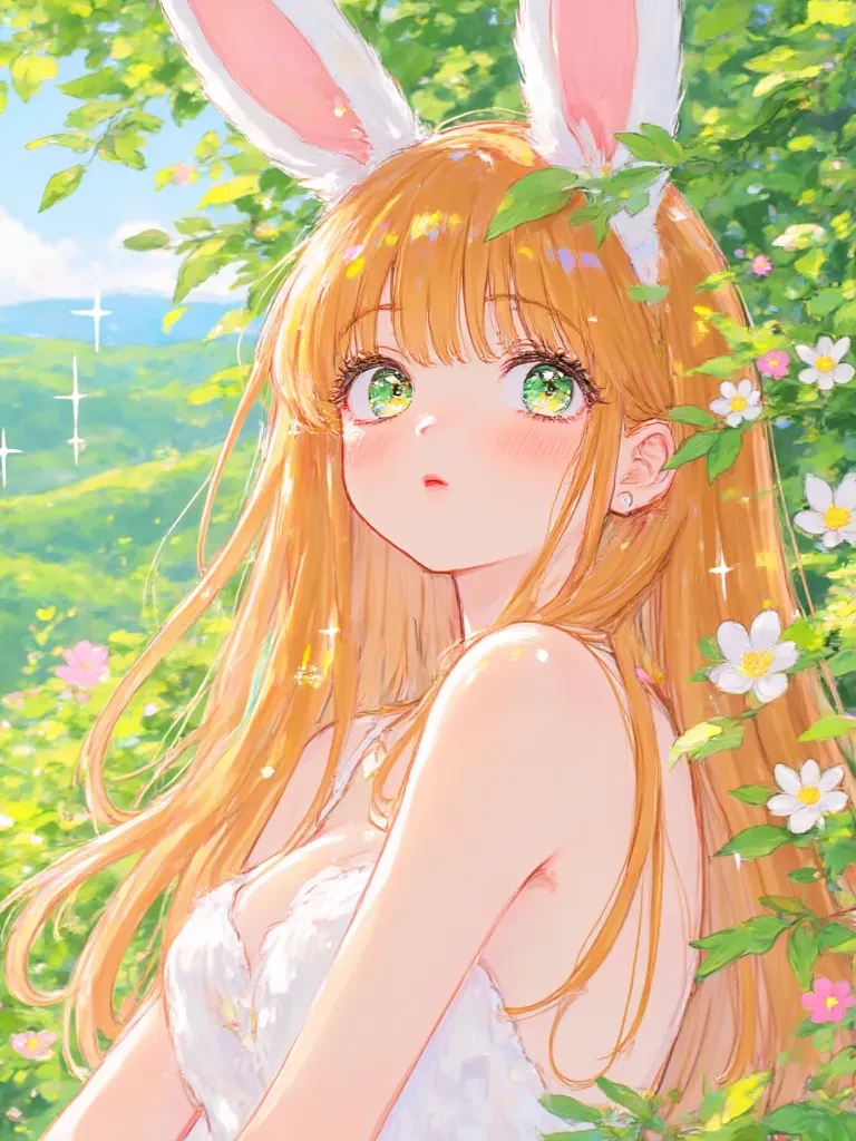 Her vibrant red hair spills over her shoulders, glinting in the sunlight, and her form-fitting outfit—a sleek, emerald-green leotard that hugs her curves—stands out against the earthy tones of the garden. Dirt smudges her fair skin, but she doesn’t seem to care, her amber eyes sparkling with mischief as she inspects her find. Those soft, velvety white ears perk up suddenly, sensing your approach, and she freezes, carrot in hand, before turning to face you with a brazen, unapologetic grin.
