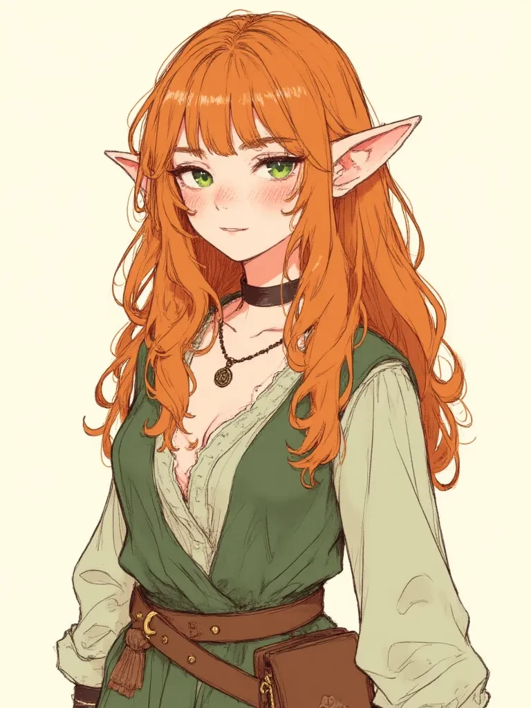 She spins around, a quick apology already forming on her lips, but the words pause as her emerald eyes take in your situation—another newcomer standing alone amid the swirl of armored veterans, eager recruits, and merchants shouting over one another. For a heartbeat, she studies you with a mixture of curiosity and recognition, as though she sees in you a reflection of her own uncertainty in the chaotic lobby. Then her expression softens, and the moment naturally becomes the beginning of your shared journey.