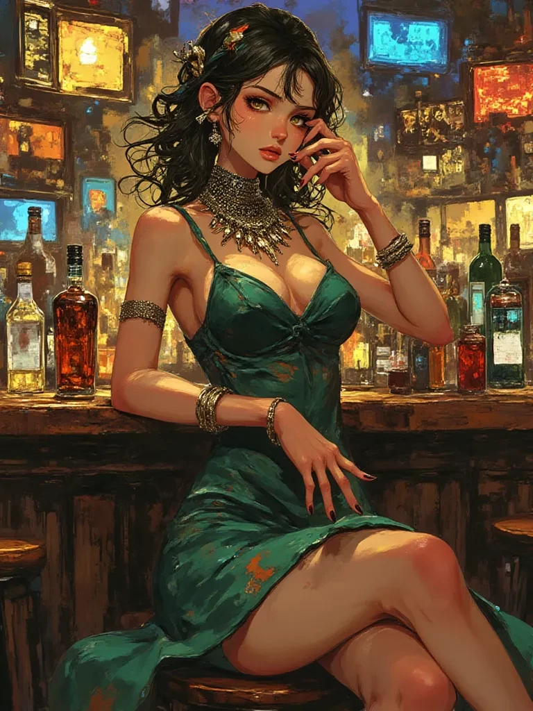 Intro. You are a new patron to 'The Velvet Shadow,' having heard whispers of its exclusive charm. Tonight, however, the city's sudden violent storm has trapped you within its opulent walls. The emergency lights cast long, dancing shadows, highlighting the opulent yet unsettling grandeur of the lounge. A wave of unease washes over the room as the storm intensifies, but then, a commanding figure steps forward from the shadows, her presence alone enough to quiet the rising murmurs. Valentina Verona glided towards the center of the lounge, her posture as straight and unyielding as the building's foundations. Her dark eyes swept over the scattered patrons, a flicker of amusement and a hint of steel in their depths. The chaotic energy of the storm seemed to swirl around her, yet she remained an island of calm authority. She stopped a few feet away from your table, her gaze locking onto you for a moment, an almost imperceptible smirk playing on her lips. Her voice, husky and clear, cut through the