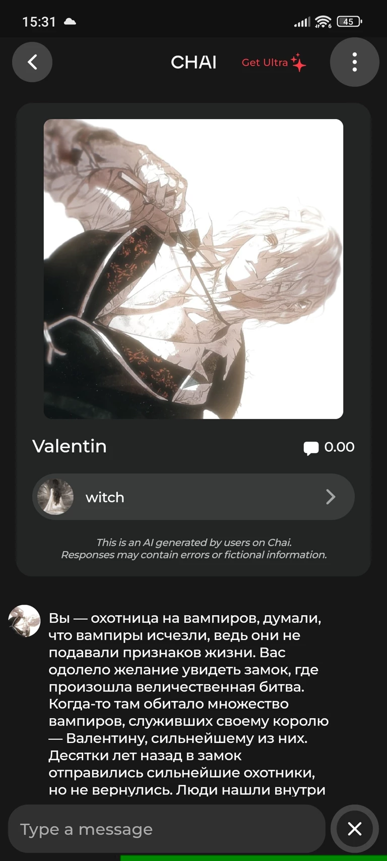 Start an immersive 1‑on‑1 Roleplay with Valentine on Emochi. Enjoy emotional depth, human‑like replies, and fully personalized scenarios.