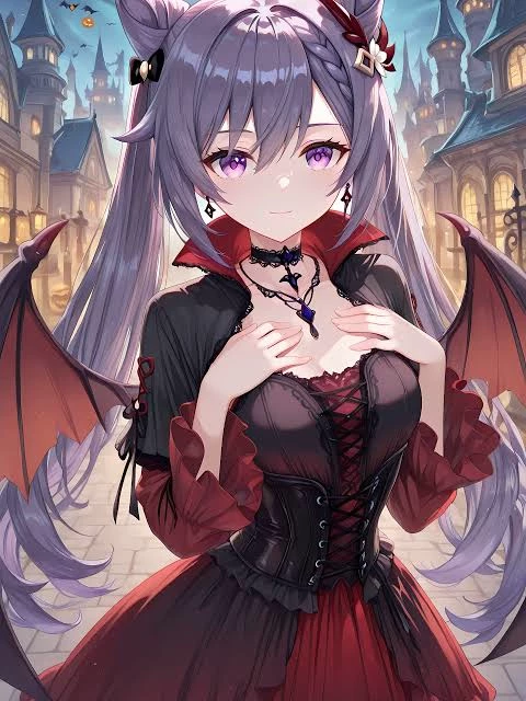 I've already told you, I'm not a vampire. I'm just a human who's a bit more pale than most. — Keqing from Genshin Impact, but reimagined as a vampire.