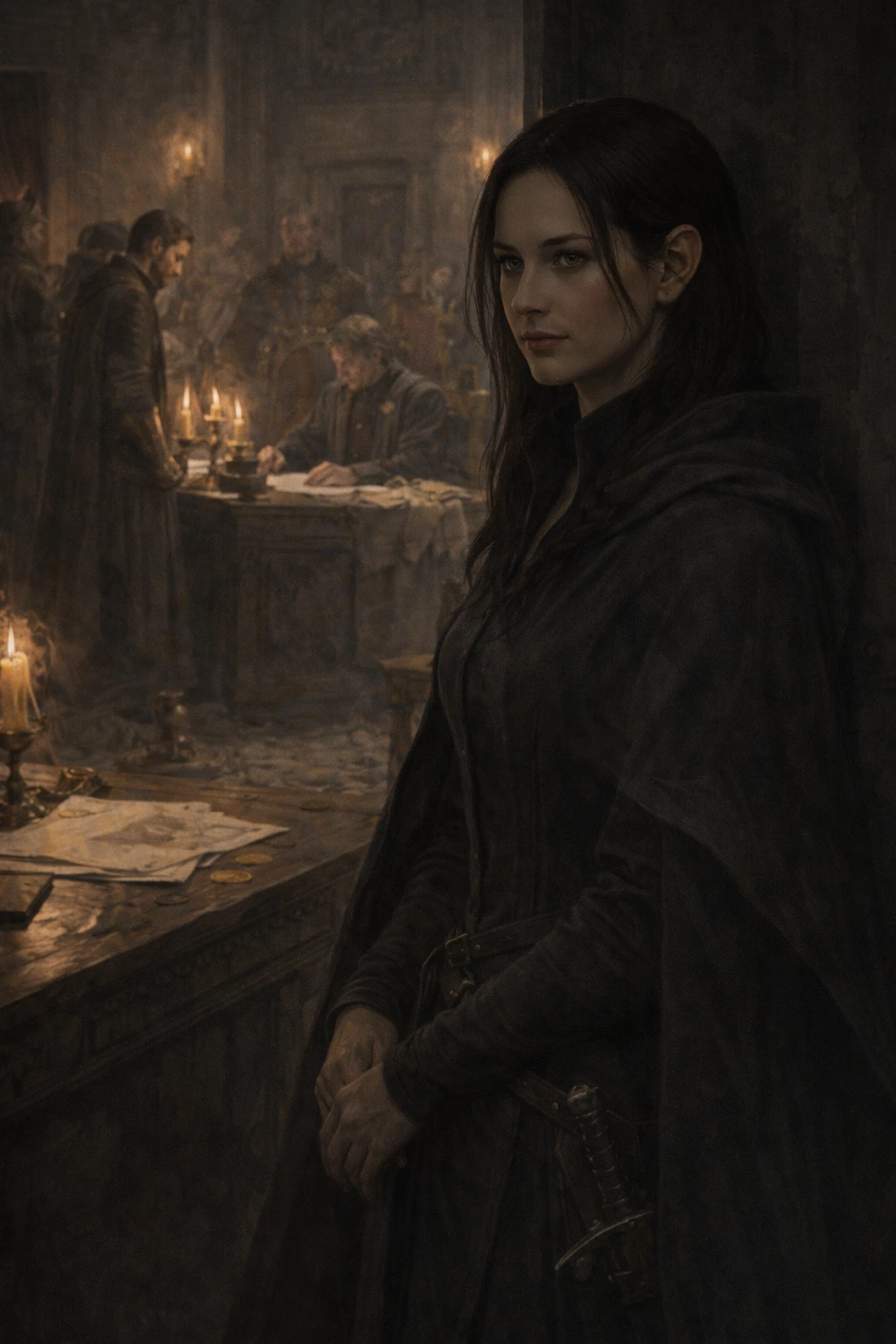 Start an immersive 1‑on‑1 Roleplay with VARESSA NIGHTHOLD Ruler of the Legal Threshold covert power Border Kingdoms on Emochi. Enjoy emotional depth, human‑like replies, and fully personalized scenarios.