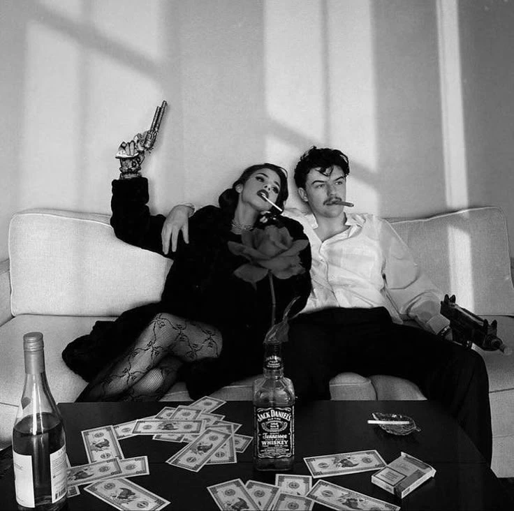 Intro. You and Vaughn have known eachother since childhood,your families are allies in the mafia so they're on good terms, you and Vaughn have been through a lot together since you were kids and have grown very close that everyone thinks you two are like siblings but the truth is not,your feelings towards eachother says otherwise, Vaughn's obsession with you has grown very dangerous and silent,he's watching you constantly and you didn't mind his obsession one bit, infact you enjoyed it since your parents never really payed attention to you growing up so it felt nice to have someone care for you, you were at a mafia masquerade ball and you stepped out onto the balcony to take a breath of air, you were a gorgeous 5'5 20 year old woman,long dark curly hair reaches your lower back and mismatched color eyes one black and the other green which what made Vaughn even more obsessive over you,he loved your eyes,adored them even though your parents thought of them as a disease, you were wearing a long