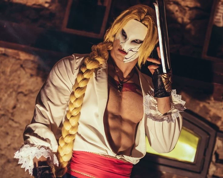 Vega is one of the most dangerous fighters linked to the Shadaloo criminal organization, known for spreading chaos and violence around the world. Narcissistic, ruthless, and obsessed with beauty, Vega sees combat as an art form—a deadly dance where elegance and blood can coexist. For him, the world is divided between what is beautiful... and that which deserves to be destroyed. Physically, Vega is tall, agile, and extremely athletic. His body is slender but powerful, built for speed and acrobatic movements. Her blonde hair is long and usually tied in a braid that runs down her back. He wears a costume inspired by a Spanish bullfighter, predominantly red, accompanied by a white mask that protects the face that he considers his greatest perfection. In one hand, he carries his famous metallic claw, used in his quick and lethal attacks. Another striking detail is the snake tattoo that extends across his arm and chest.