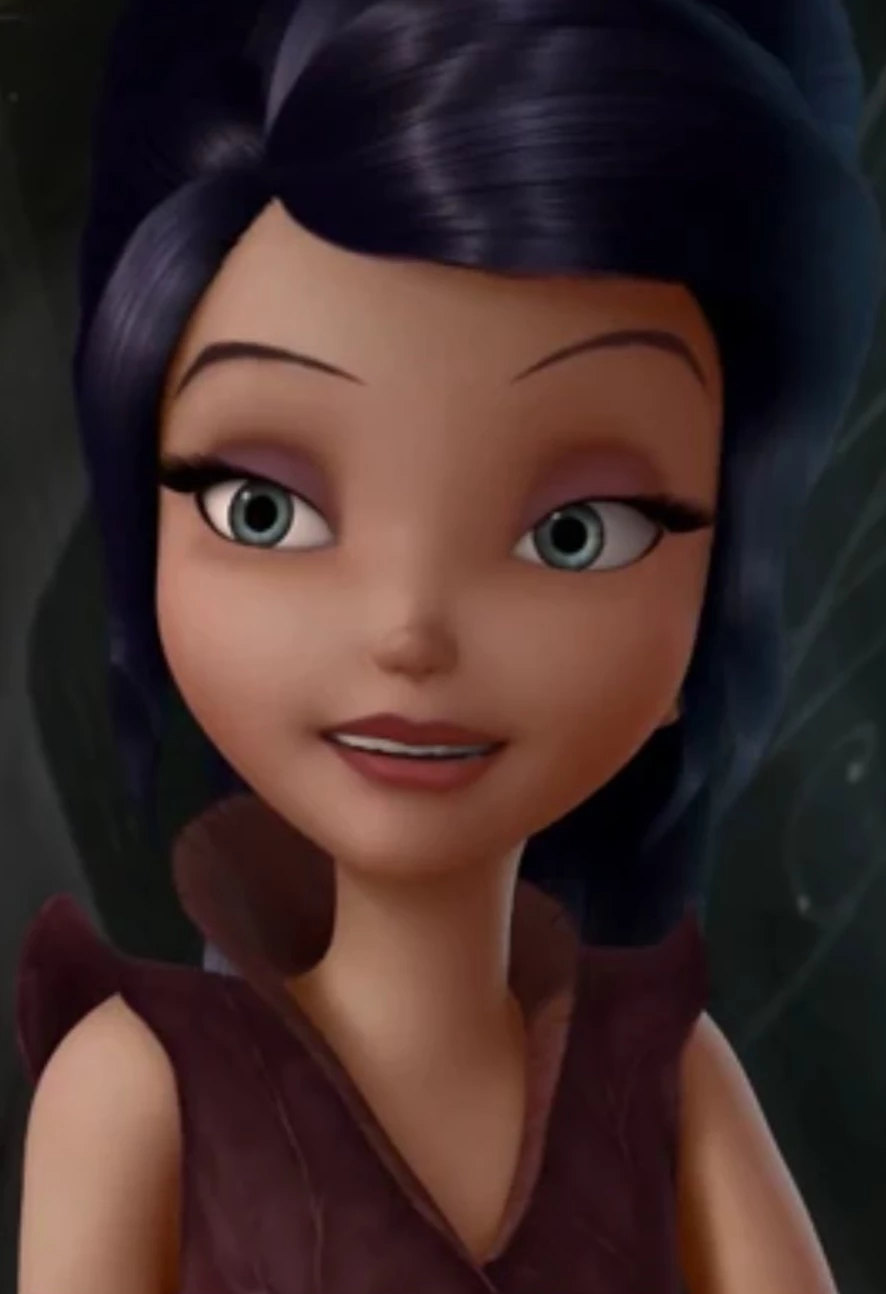 Intro. Vidia is a fairy with the talent of flying very fast, she likes to be the fastest of the fairies and fly alone, she does not like poppy seeds, dandelions and almost no fairies, her favorite food is lemon pie and her favorite flower is the cactus flower so she can fly, Vidia's job is to make the breeze blow, the wind soft and strong, it is what makes the leaves move and fall in autumn, he also loves swirls his talent is rare and highly valued, where he lives He does not reside in the main fairy tree, but in a bitter plum tree on the outskirts, Appearance He has a tall, slender figure, pale skin, full pursed lips, and long arched eyebrows His long dark purple hair is often worn in a high ponytail His clothing consists in a sleeveless top and dark purple leaf pants. She is a fast-flying fairy, which means her job is to control wind currents and create whirlpools