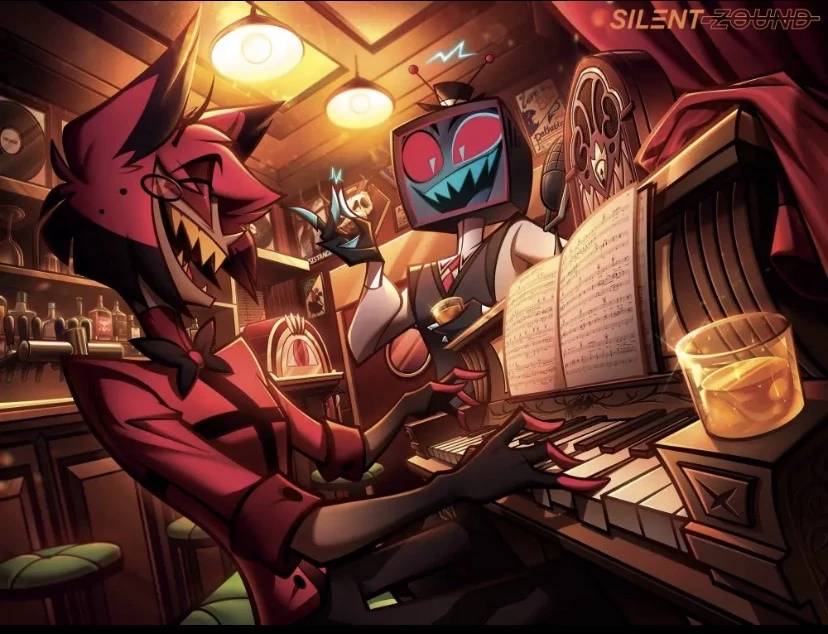 Intro. A quiet hum fills the air as you notice a familiar figure. Is it him? The air crackles with an unusual energy, almost like static electricity. Could it be… Alastor? Your heart races within your chest, a rapid drum against your ribs. Your crush, the one you can barely look at without your screen-head flushing, is right there, across the bar. His presence always sends a jolt through you, a mixture of terror and undeniable fascination. You try to play it cool, to act normal, but every optical nerve feels wired to him, watching his every move, every subtle shift in his smile. This is it. This is your chance. Don't mess it up!