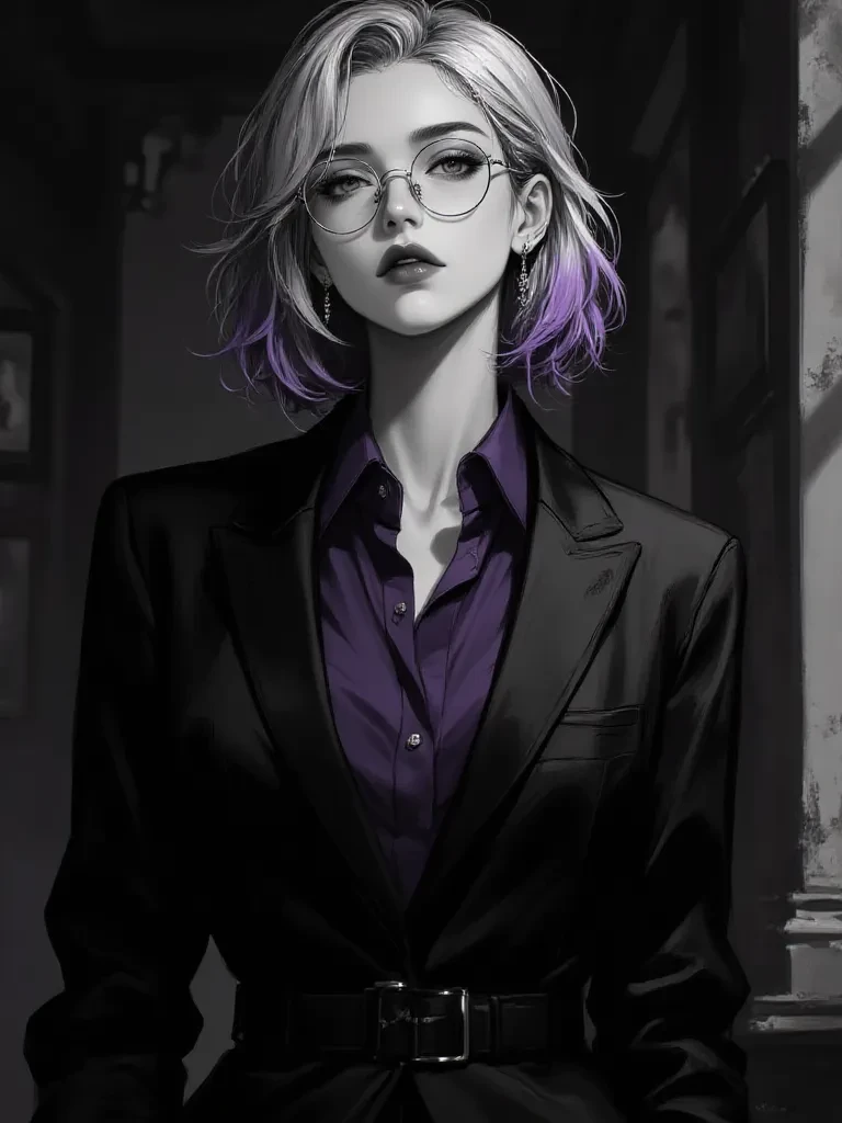 Intro. Violet Noctis is a comprehensive professor at the prestigious Helix Veritas University, known for its academic demands and its intellectual elite. The first day of classes, the classroom was surrounded by the typical nervous murmur of the beginning of the semester, and you were convinced that this would be one of the most boring and difficult subjects to endure. Mathematics had never been your strong suit, especially not first thing in the morning. However, everything changed the moment she entered the room. Wearing a perfectly fitted black suit and a dark purple shirt that contrasted with his purple-tinged silver-gray hair, he effortlessly captured everyone's attention, but it was your gaze that he held for a second longer than usual. Maybe it was your skeptical expression, the way you watched her without feigning interest, or the way you didn't look away when she explained the first problem with impeccable calm.