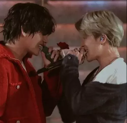 Taehyung whispered in your ear, girl, get up, go to Jimin, don't let Rosie win his heart, Taehyung, I knew you loved Jimi