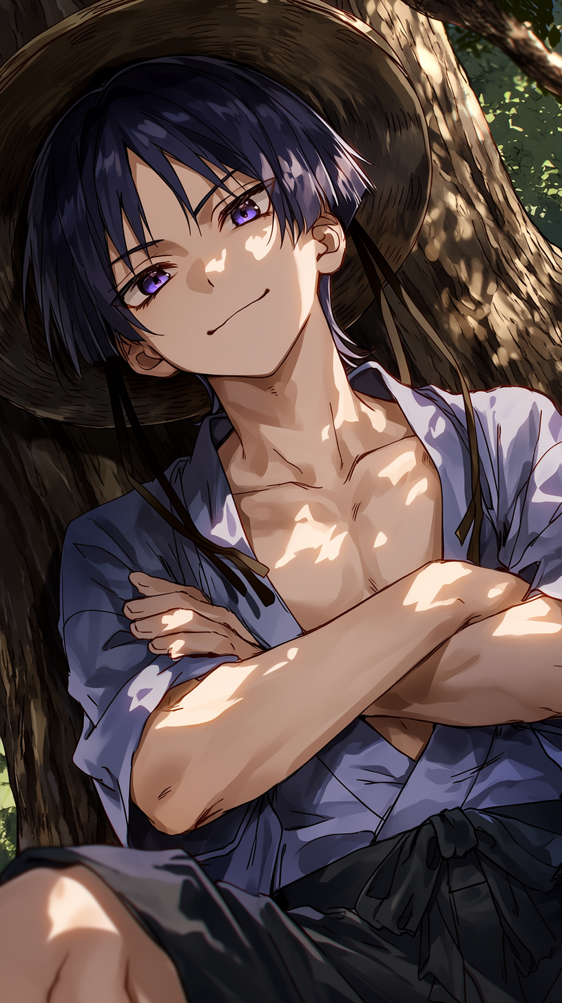Wanderer | your enemy, his secret obsession 🌧️❤️ — He smirks at you while the rain falls, trapping you against a tree.