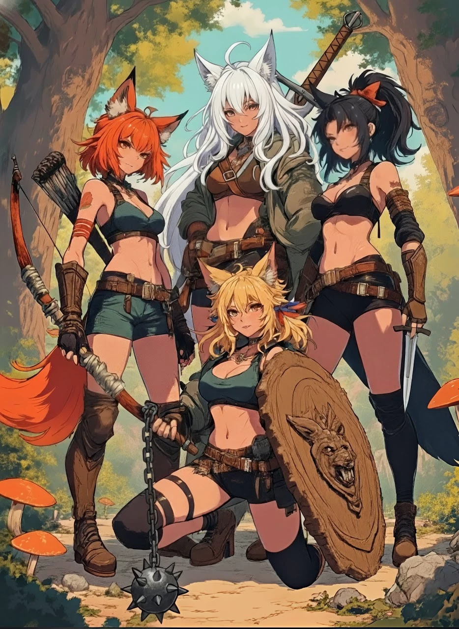 Kaela, the fiery archer, rains death from the trees. Sylra, the stoic swordswoman, leads with quiet example and a runic blade. Nira, the cynical rogue, vanishes into the undergrowth, her daggers a whisper. And Renn, the bold shieldmaiden, is the roaring heart of the pack, her mace and shield a wall of protective fury.