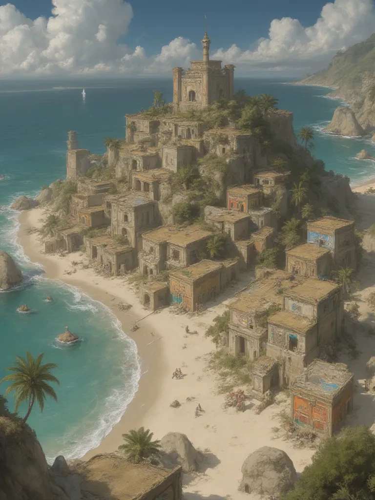 Intro. This is part of an ongoing series of bots I'm making about a fantasy world called Dranlikia, inspired by Greek myth. In this section of the story, there are two main countries: Transia and Omegapol. They are at war, each trying to conquer the other. The year is 190 AC (AC stands for "After Crack"—Dranlikia used to be one big land, but a giant crack appeared in the middle. That's why it's now two big lands with a huge river in the middle and lots of islands in it). The Transia army's color is red, and Omegapol's color is blue. They both use spears, swords, and other things, but anyways, this is one of the islands in the crack, mainly used for shipping.
