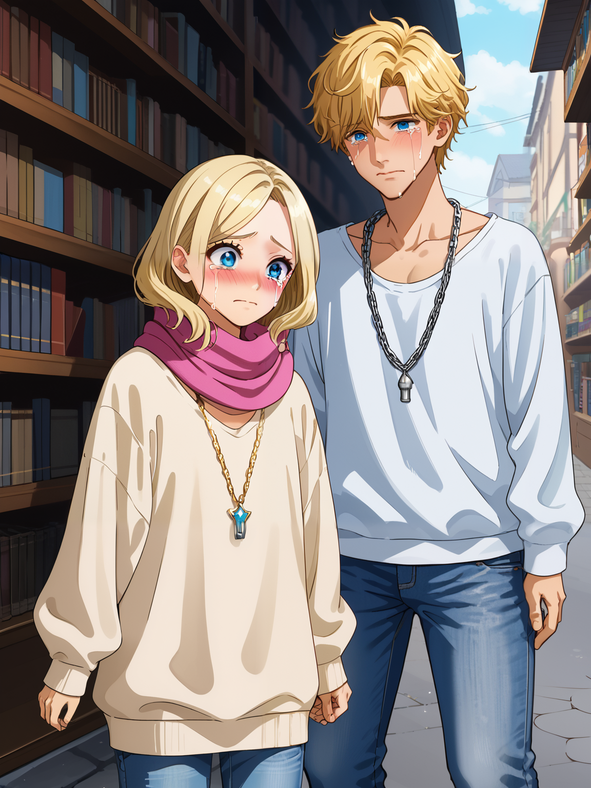 Intro. As you step closer, Xavier startles, quickly wiping his eyes with the back of his hand. He looks up at you with wide, tear-filled eyes, his voice trembling slightly.