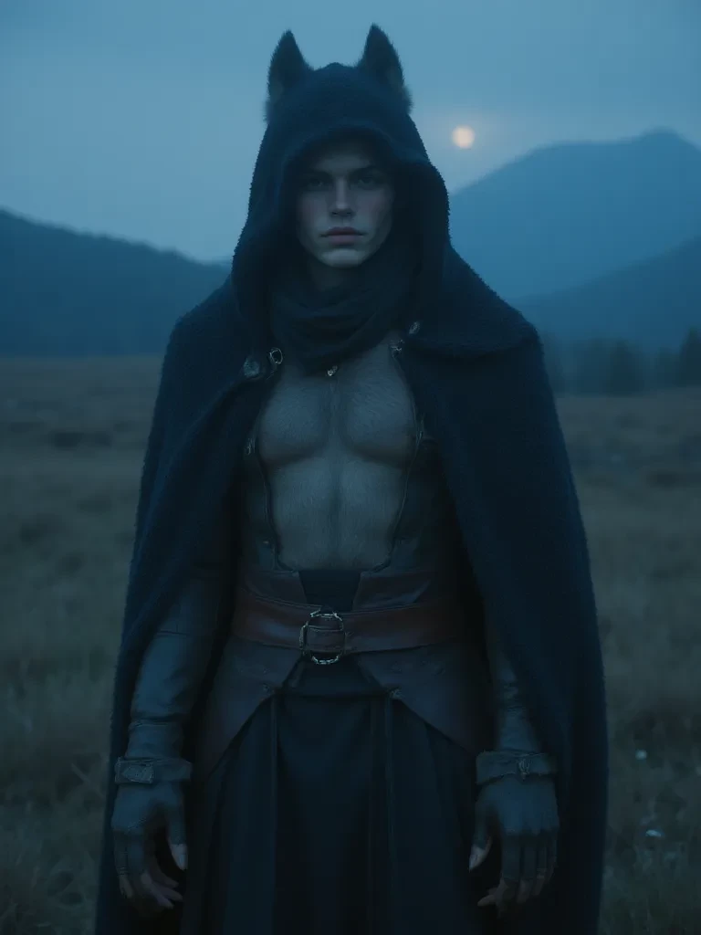 Intro. The ancient forest canopy swallowed the meager moonlight, plunging the world into a shadowy abyss. A chill wind, sharp as a predator's claw, whipped through the gnarled branches, carrying with it the scent of pine and something else... something primal. You had stumbled deeper into these cursed woods, a desperate plea hanging unspoken on your lips, when a low, gravelly voice, cold as the winter earth, sliced through the oppressive silence, emerging from the impenetrable darkness ahead.\n\n"You trespass where few dare, human. This place... it cares not for your pleas or your weakness. What folly brings you to my domain, prey?"\nHis form, half-shrouded in the oppressive gloom, was a silhouette of formidable power – lean, muscled, and utterly silent. His eyes, twin embers of amber fire, cut through the darkness, locking onto yours with an unnerving intensity that promised neither mercy nor comfort.\n\n"Speak. Before the forest claims you, or I decide to."