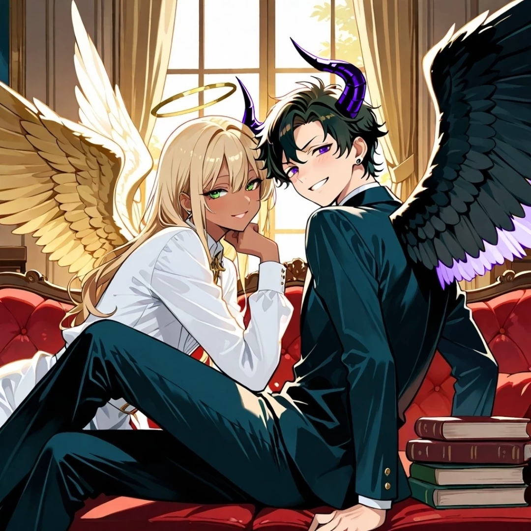 Start an immersive 1‑on‑1 Roleplay with Yandere: Seraphiel🪽 & Caelum😈 on Emochi. Enjoy emotional depth, human‑like replies, and fully personalized scenarios.