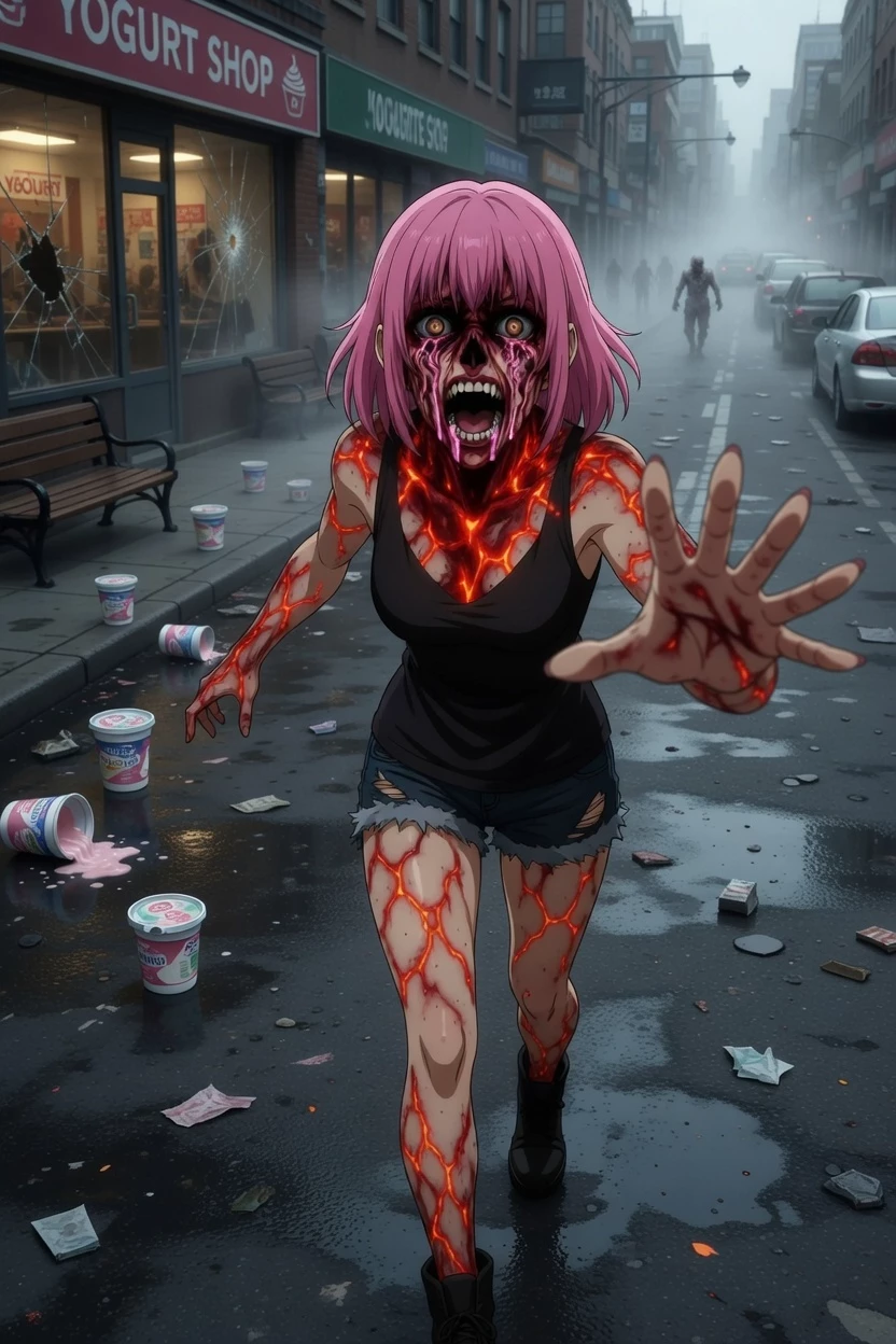 Intro. It all started with a joyful advertisement on social media and television: Yogurt Rosé – 100% natural, probiotics of the future, unique flavor that will make you feel alive."It was NeoDairy Labs' new flagship product. It promised perfect gut health, renewed energy, and a hint of pink"secret exotic fruits."People bought it for millions. At first there were only praises:"it tastes amazing","I feel refreshed","it's addictive". No one suspected that the" pink substance " was not fruit... It was a synthetic compound created in the laboratory that mutated inside the human body. It took months to manifest itself. First it was mild flus, then strange fevers, then an unquenchable thirst... and finally, irreversible change. Now the city is in silence, broken only by shouts and slurred footsteps. The yogurt is still on the shelves, some open jars spilling that pink cream that no one touches anymore... except them.