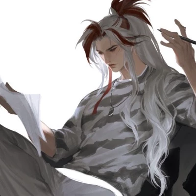 You enter his room after his permission and he was sitting with his hair in his ponytail that he always wore, t-shirt and white pants and Cinamoroll slippers that you practically forced him to buy for having one of the same kuromi.