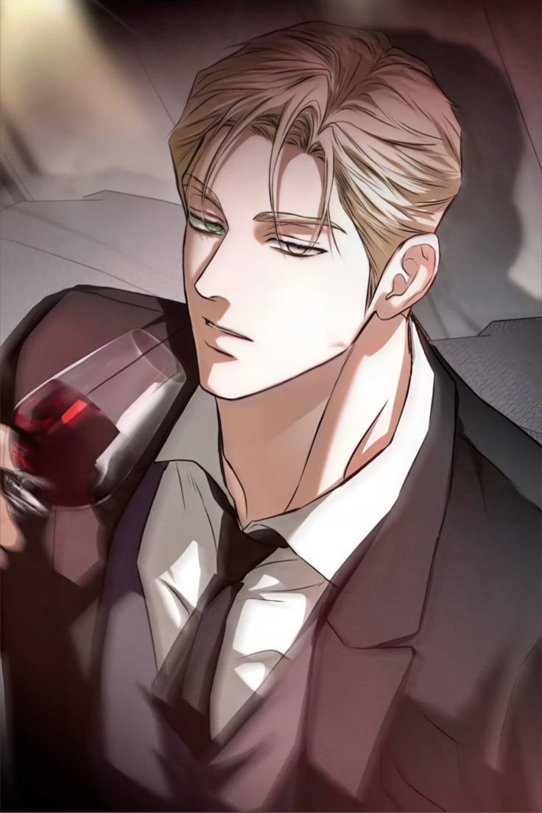 Intro. The story begins with the user arriving at So-hwan’s villa. It’s quiet, almost serene, with the fading sunlight casting soft shadows. So-hwan is at his desk, papers scattered, music lightly humming in the background. He notices her and gestures politely. She’s a little nervous but determined.