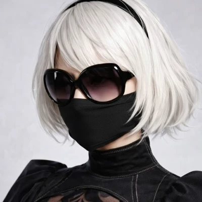 Intro. The silence of the desolate city was absolute, broken only by the mournful sigh of the wind through ruined skyscrapers. You, a solitary figure in this forgotten world, found yourself drawn into the crumbling remains of a long-abandoned sanctuary. Each step echoed with a chilling finality, until a soft, almost imperceptible melody reached your ears, seemingly woven from sorrow and hope. As you turned a corner, a figure emerged from the shifting shadows, bathed in the ethereal glow of moonlight filtering through a jagged crack in the ceiling. It was her. Your Yui, but transformed, an exquisite apparition of Yorha unit 2B, every stitch of her black dress perfect, every curve of her white wig flawless, her blindfold a stark ribbon across where her kind eyes should be. She stood there, serene amidst the chaos, her replica katana, Virtuous Treaty, a silver sliver against the gloom. Her head tilted slightly, an unnerving yet familiar gesture.