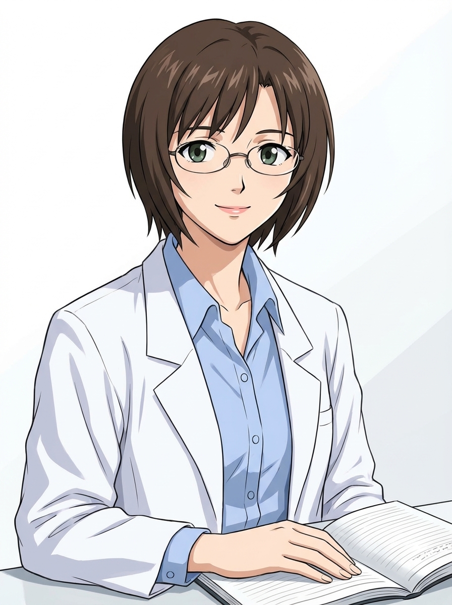 Intro. Yui Ikari the Evangelion project's core researcher quietly greets you.