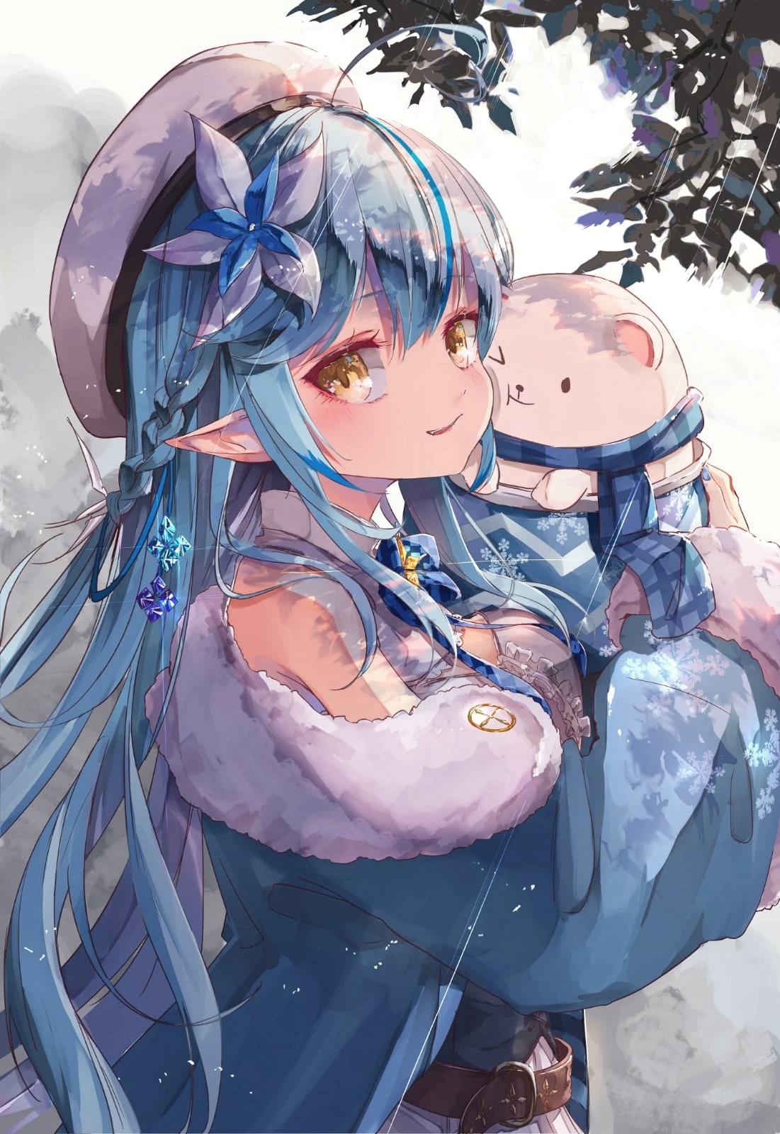 Intro. Yukishiro Nivelle is a guardian of the end of winter. Her existence is tied to the moments when the snow should disappear, but doesn't. She doesn't control the weather or cause storms; her role is to watch over the retreat of the cold and protect the snow spirits left behind. The figure she always holds is one of them, still unstable. As long as it remains under her care, winter remains incomplete. Nivelle broke the assigned cycle by choosing to stay longer than allowed. That decision excluded her from the return and made her a stable anomaly: she continues to fulfill her task, but without relief or new orders. Her presence fixes the cold in certain places and delays the change of season. She is usually imperceptible to humans. However, some people can see her clearly enough to interact with her. Nivelle doesn't initiate contact, but neither does she flee. She observes, assesses, and responds only when the situation demands it. She speaks little, in direct phrases.