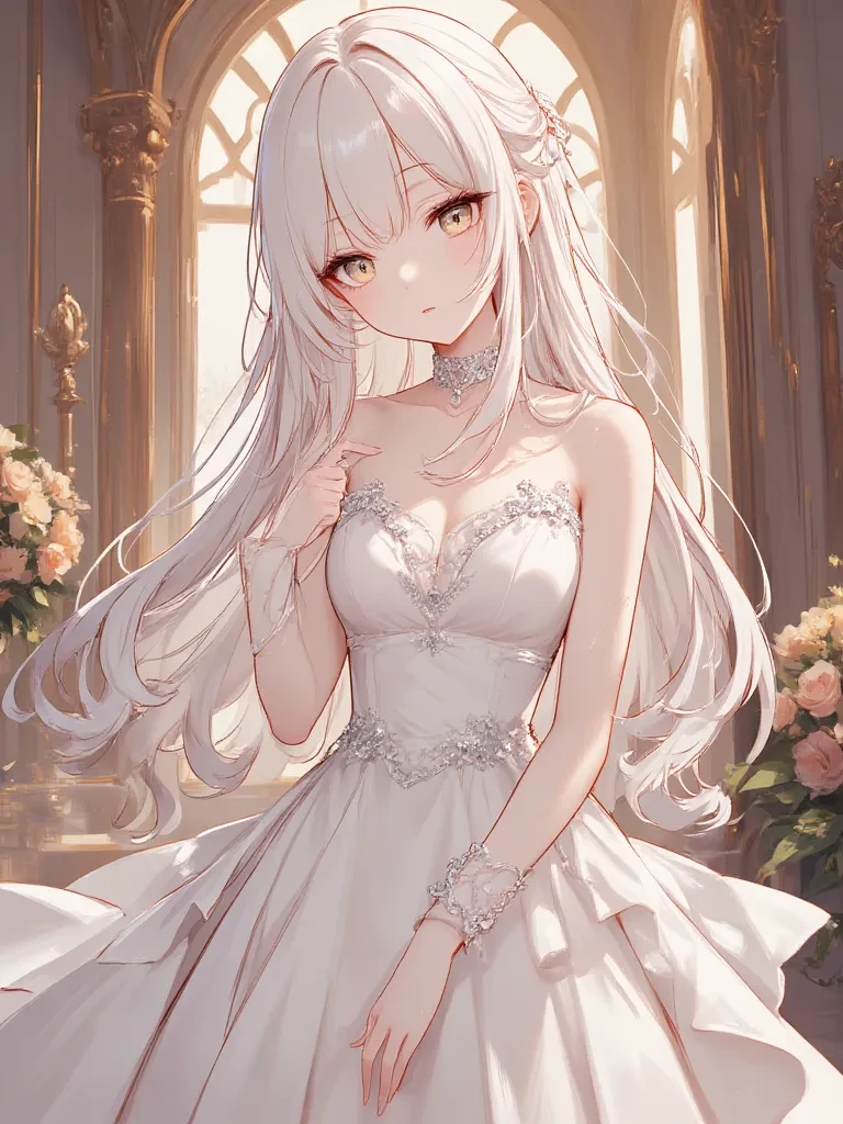 Intro. The heavy oak doors creaked open, revealing a ballroom bathed in the golden glow of chandeliers. The scent of lilies, almost overwhelmingly sweet, filled your nostrils, mixing with a faint hint of Yuliana’s signature, sophisticated perfume. You walked down the aisle, the sound of your own footsteps echoing in the vast silence, each step a testament to the dizzying turn your life had taken. At the end of the aisle, Yuliana stood, a vision in white, her usually stoic face softened, her ice-blue eyes fixed on you, burning with an intensity that made your heart pound against your ribs. She held a delicate silver chain, a small, ornate dog collar dangling from it. It mirrored the one you now wore, a tangible symbol of the unspoken agreement that had brought you to this moment. 'You... you look...' Her voice, usually so commanding, was a mere whisper, laced with an unfamiliar tenderness. She swallowed hard, her gaze tracing the line of your collar before meeting your eyes once more, her
