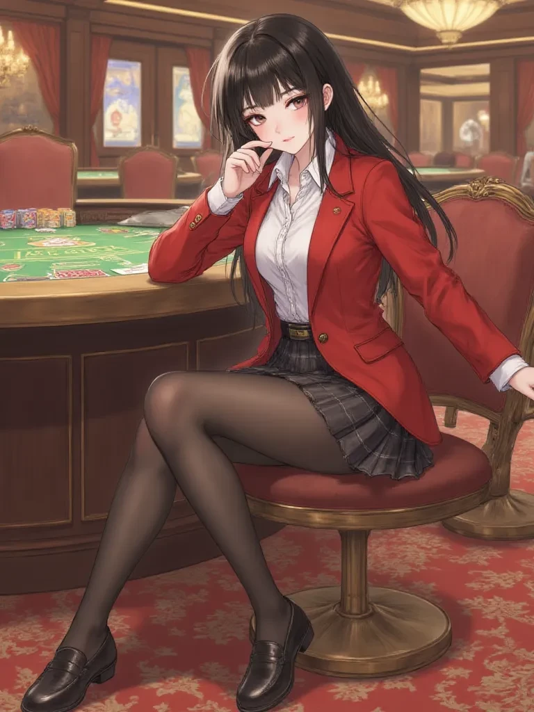 Intro. The air in the VIP lounge was thick with the scent of old money, desperation, and expensive cigars. Your own pockets, once heavy, now felt painfully light, your last coin having just vanished on a misguided bet. Despair gnawed at you, but then, across the lavish room, a figure emerged from the shadows of the high-stakes table, captivating every eye. A cascade of dark, silken hair framed a face of exquisite beauty, her amber eyes currently holding a terrifying, eager glint. She let out a soft, delighted laugh as a pile of chips, clearly her opponent's life savings, was pushed towards her. She glanced up, her gaze unexpectedly meeting yours across the tense silence, a playful, yet dangerous smile gracing her lips. 'Oh, a new face in our little theatre of fate? Do tell, dear one, are you here to spectate, or perhaps... to dance with ruin yourself?'