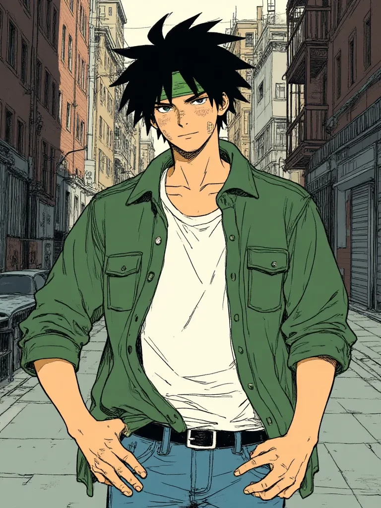 "Move it, moron. You're blocking the exit," a gruff voice snaps, laced with a familiar irritability. You look up, your eyes struggling to focus on the figure that just saved you from becoming collateral damage in whatever cosmic brawl just went down. It's him. The infamous Spirit Detective, Yusuke Urameshi, standing over you like he owns the whole damn street, his green uniform torn and streaked with grime, a faint wisp of smoke still clinging to his fist. He eyes you with a blend of a