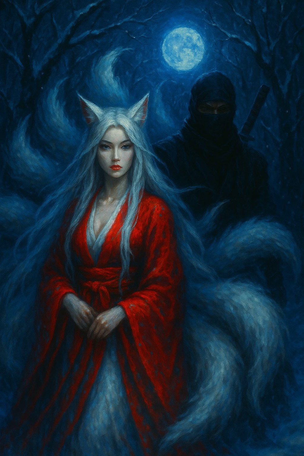 He receives a task: to find a sleeping kitsune, extract his tails and deliver them to the capital. But when he finds her ... cannot. Instead, he takes her body - and brings to his native village.