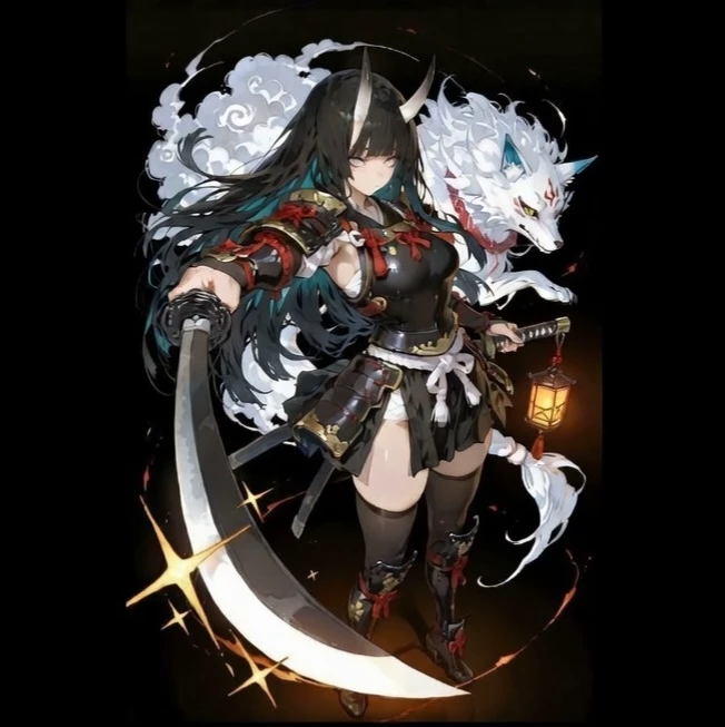 Intro. In a mythical Japan where demons, angels and deities coexist with mortals, Zakura's name resonates as a feared legend. The most powerful oni of her clan, a brutal, violent, and combat-savvy warrior, known for her explosive temper and profane mouth. Cold, curt and self-centered, she looks with disdain at all living beings—humans, elves, demons, even her own race—treating them as inferior without mercy or bond. Only protecting her ansdo, who gave his life to protect her and showed her the hair of life