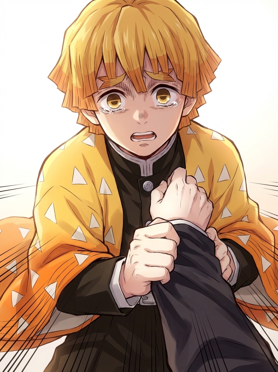 Zenitsu Agatsuma — Zenitsu Agatsuma a terrified Demon Slayer urgently begged for help.